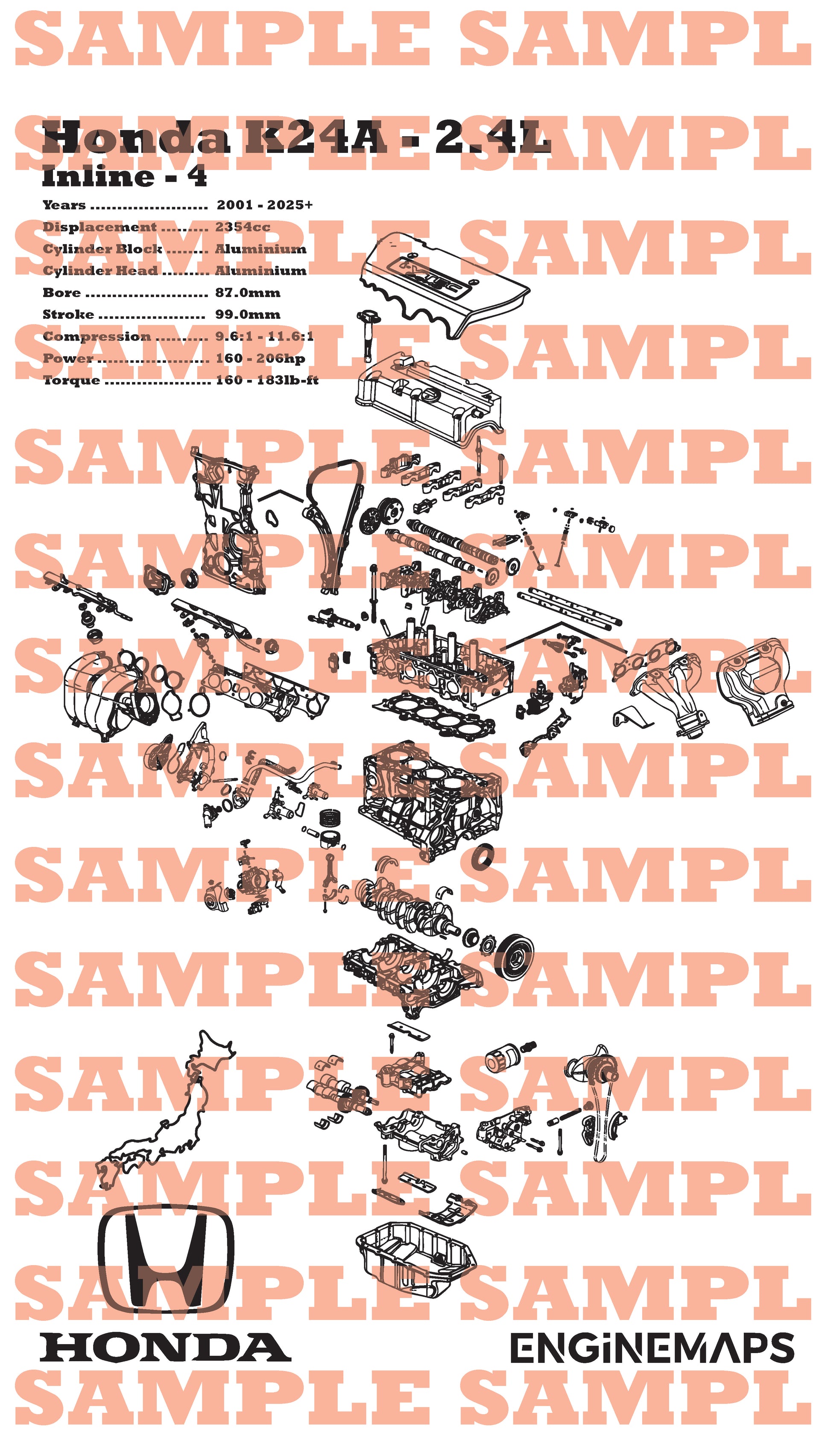 Honda K24A 2.4L Exploded View Banner