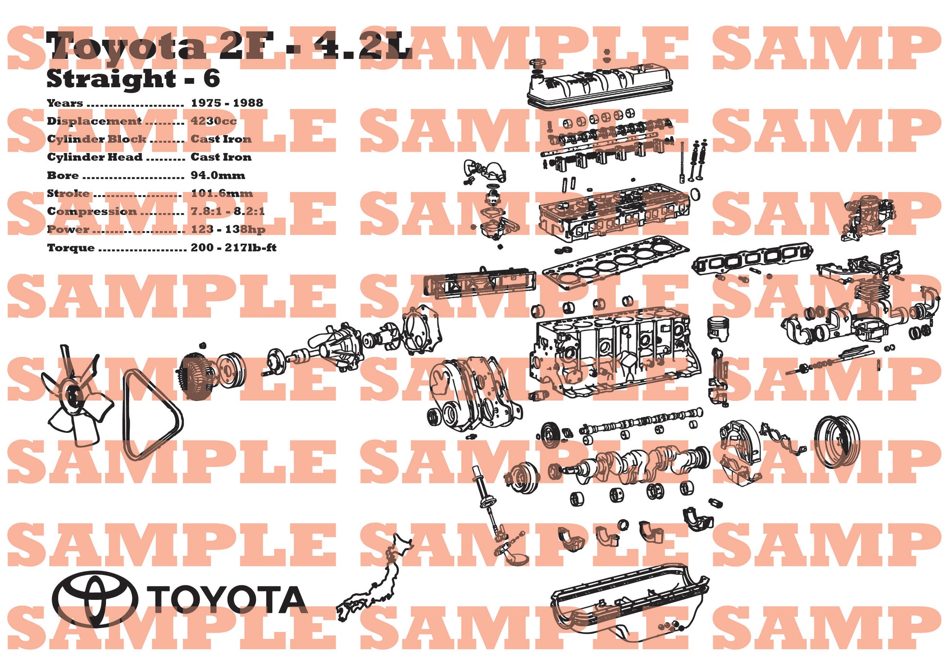 Toyota 2F 4.2L exploded view poster